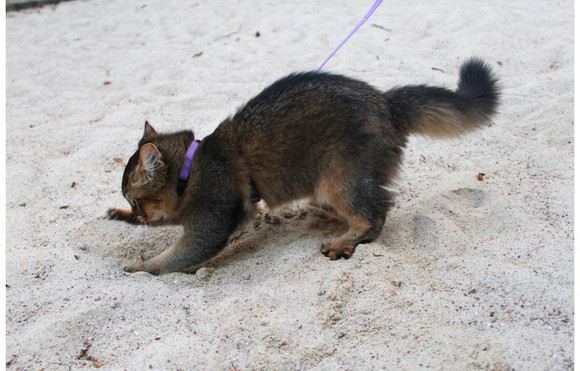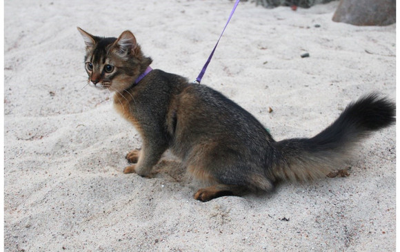 乖巧的Lyalya願意繫上遛貓繩,跟著主人Palina一起外出晃晃