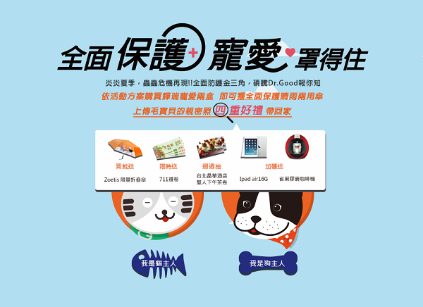 最後I小編要報好康給大家,現在只要購買輝瑞寵愛二盒,就送你精美的晴雨兩用傘哦!而且到他們的官網上傳毛小孩和雨傘的合照還有機會把Ipad等好禮帶回家咧!還等什麼咧?趕快去參加吧~