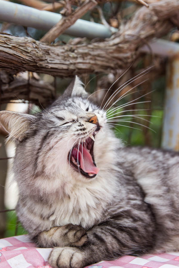 這時候的打哈欠,是代表貓咪想要甩掉睡意、提振精神的意思。