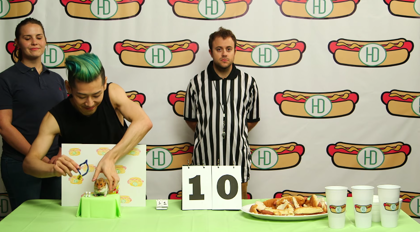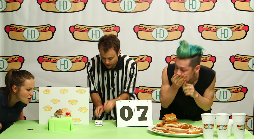 此時,鼠鼠啃下的熱狗麵包數量已經小小超前