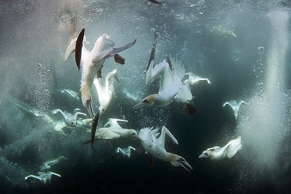 時速高達100公里的急速俯衝,往往在塘鵝插入水中的那一刻,便可讓落水附近的魚兒昏了過去、或是來不及反應