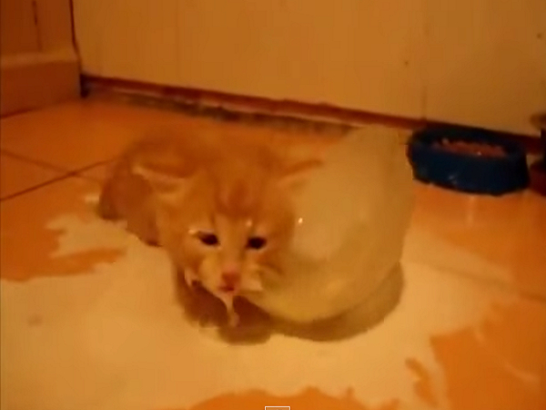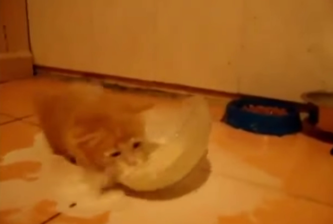 小橘貓:沒關係,灑在地板上一樣可以喝啦~