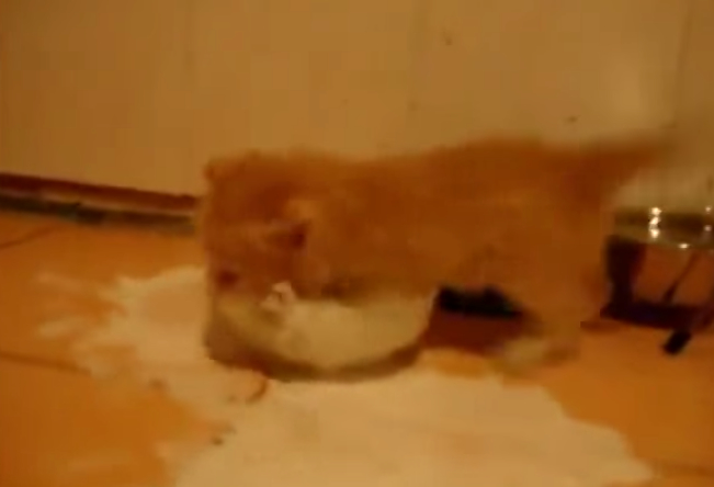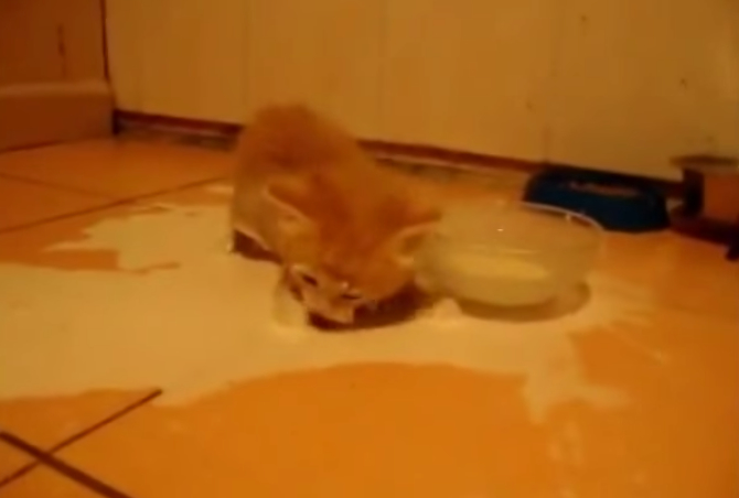 沒看過吃相如此狂野的貓咪!國外一隻橘色虎斑小貓不知為何看到牛奶非常之激動,不但咕嚕咕嚕喝得很大聲,甚至整個身體都浸到碗裡面,到最後激動到把碗都給打翻了!喝個牛奶喝到整身都是,牠也算是古今中外第一貓了!!!
