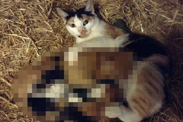 後來三花媽媽順利生下五隻小寶寶