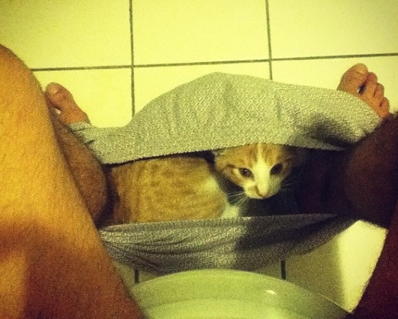 蜜雪兒的憧憬貓照之二 上廁所時躲主人內褲裡的貓咪