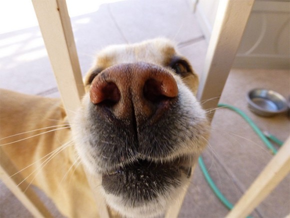 在狗狗的感官之中,據說就屬嗅覺最為敏銳!牠們嗅聞味道的方法有二種,一種是緊貼著地面,一種則是抬高鼻子聞空氣中的浮遊味道;也因此牠們才能成為人類的搜救好伙伴!不過狗奴們要注意的是,狗狗的鼻子是很脆弱的,不要隨便彈或打牠們的鼻子哦~愛注意內~