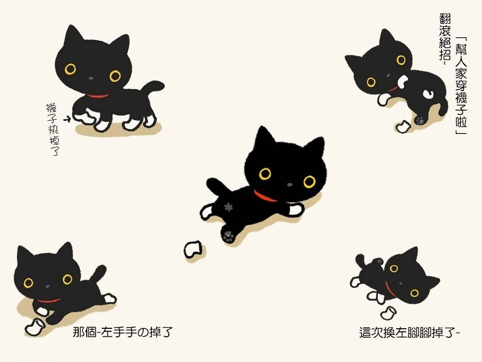 當然,在現實生活中沒有白襪控的黑貓,作者TOYA YOSHIE是某天在上班的途中看到像是穿著短襪般花色的貓咪,才激發她創作出靴下貓的靈感!在她的最新力作--《靴下貓2:熱烈歡迎小小夥伴!》裡頭,不但可以看到可愛的靴下貓翻滾賣萌,還有兩隻小小奶喵一起裝可愛,帶給大家最療癒的喵星人力量!
