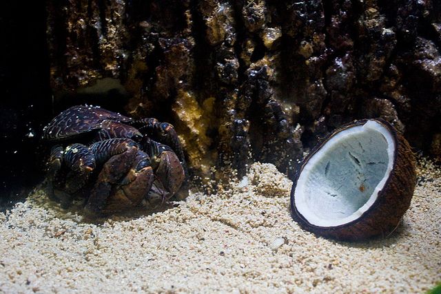 身為陸地上最大型的陸生節肢動物,牠們能用鉗子弄破椰子的外殼,享用椰子果肉,在演化早期階段,牠們還喜歡將椰子殼當作寄居的對象