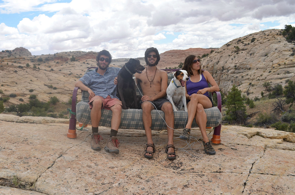 有三個好朋友也想來趟公路旅行,於是他們帶著二隻狗狗開著露營車就上路了~好朋友一起旅行除了好玩之外,不可少的就是紀念照囉!他們也想為這趟旅行拍下紀念照,但又不想拍那種對著鏡頭比YA的普通照片;於是他們決定帶著二隻狗狗和一張沙發床,拍下大自然版的沙發衝浪*註(Couch Surfing)照!