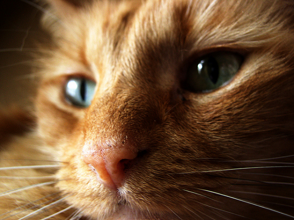 貓咪老化,其視力、聽力、嗅覺等當然也會跟著退化;而隨著視力和聽力的衰退,有些貓咪會變得膽小,於是會出現前面提過的莫名地大聲叫之類的症狀;其他像是聽不懂自己的名字、分辨不出家人、看到動來動去的東西也不會想追....等等,這都是因為大腦退化導致感官也跟著退化。