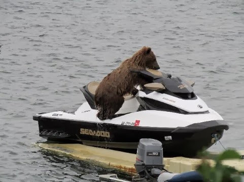 過慣人類生活了嗎?熊還會騎水上摩拖車?!