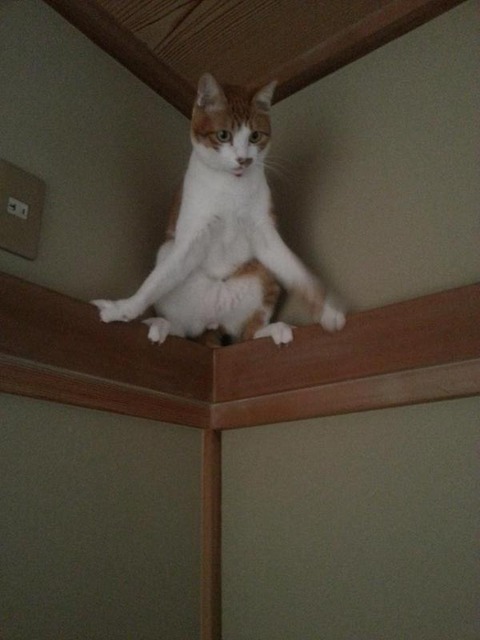 日本一位貓奴無意間發現愛貓其實也是忍者來的,因為他一抬頭就看到了.....