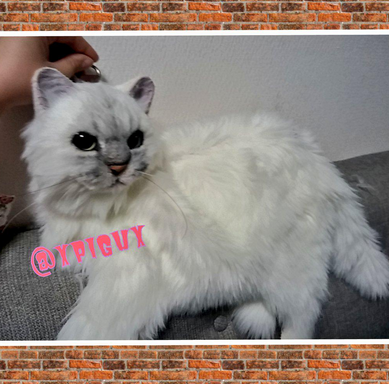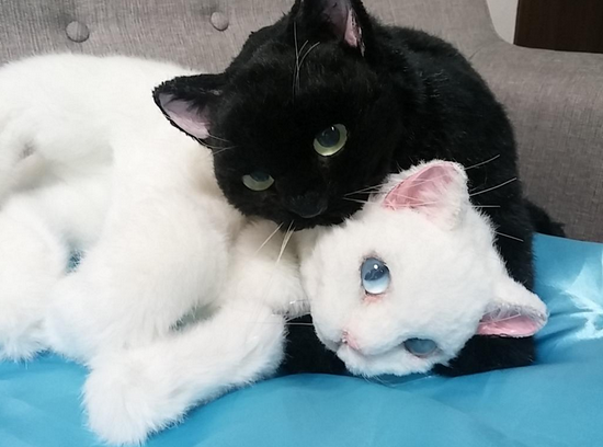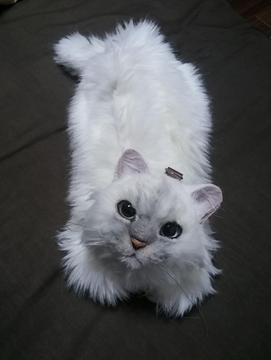 如果沒有發現喵喵後頸的金屬扣環,真的會讓人誤以為是活生生的貓咪