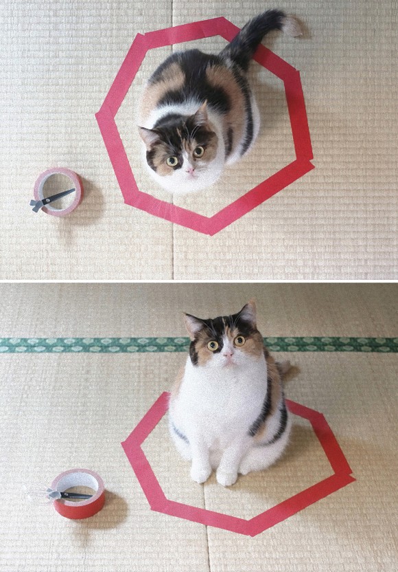 這個日本人發明的神奇捕貓圈自從上傳到網路後,在貓界造成一股風潮,世界各地的貓奴們紛紛在地上用膠帶貼成圈圈,實驗看看自家的貓咪會不會被自動捕捉!