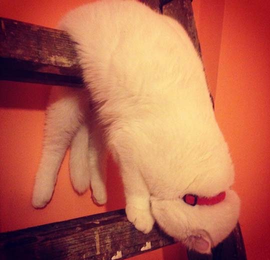 I小編發現一件事,那就是阿喵們很愛把身體某些部位垂~下來!不管是腳腳也好,還是頭啊、一半的身體啊~好像一定要有一部份被地心引力吸住才能睡得安心似的!服了U啦!