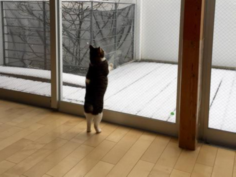 貓咪:外面有白白的東西掉下來耶~放我出去我要去玩~