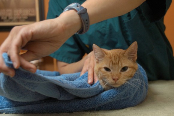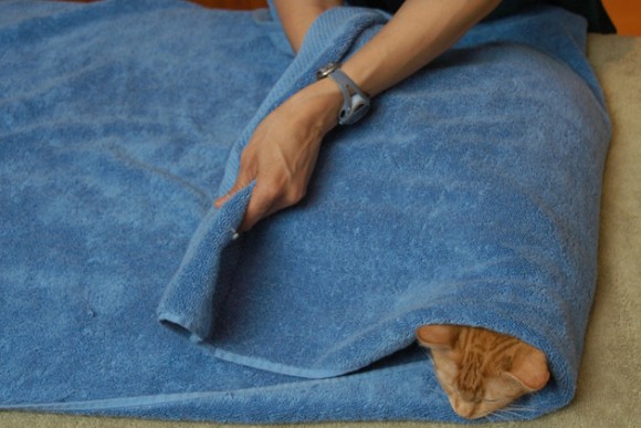 http://www.vetstreet.com/our-pet-experts/towel-wrap-your-cat-in-5-scratch-free-steps