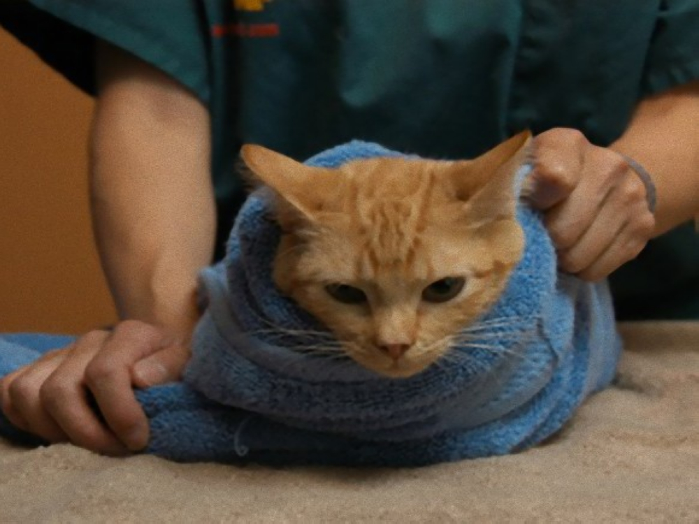 等到貓咪習慣了毛巾之後,就可以來練習包貓咪囉!雖然包貓咪有許多種方式,但Yin醫師認為最能讓貓咪安心、穩定下來的是圍巾包法!