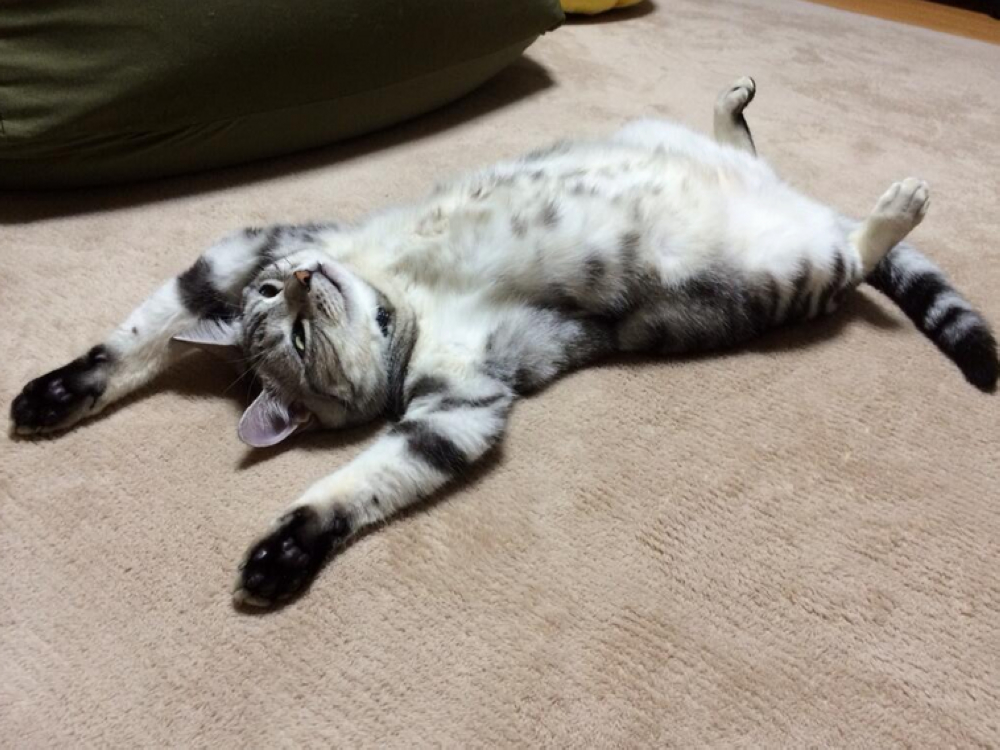 懶到家的佐助,根本是走到哪躺到哪,沒地毯牠也躺得很開心啊!