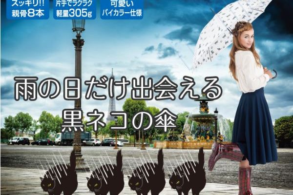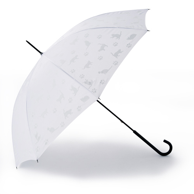 下雨時天色灰灰暗暗又會弄得濕濕的,總是讓人心情也跟著煩燥起來;為了讓大家在雨天也能有好心情,現在有日本廠商推出一款可愛又有趣的「變色黑貓雨傘」,平常不用時是一支全白的傘,一旦下雨遇水,傘上的貓咪圖案就會變成灰色甚至是黑色!一下雨就有黑貓跑出來,讓貓奴們不再討厭下雨天!
