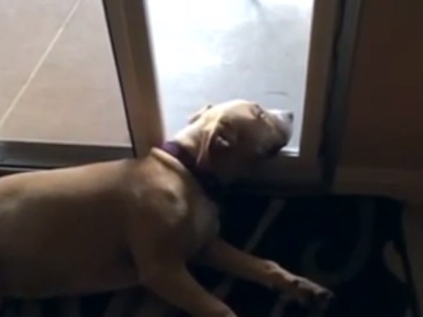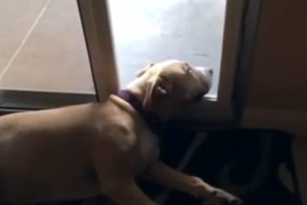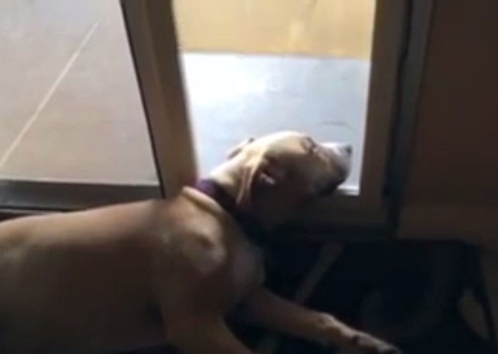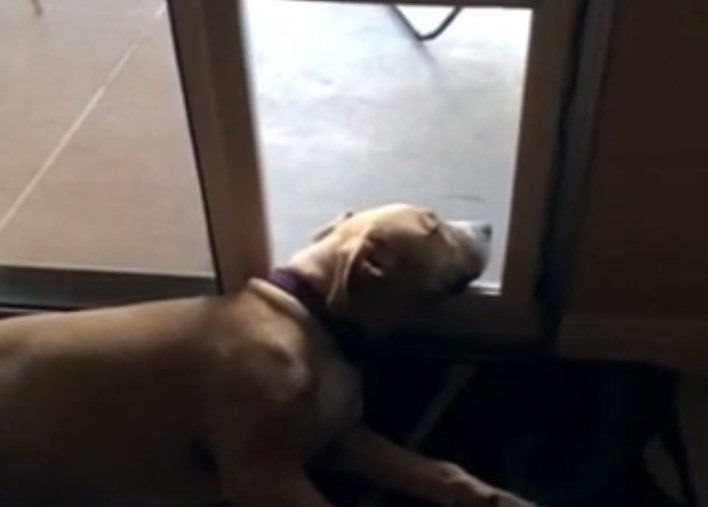 這隻狗狗睡午覺很會挑地點,哪裡不睡硬要睡在牠的自動狗門上