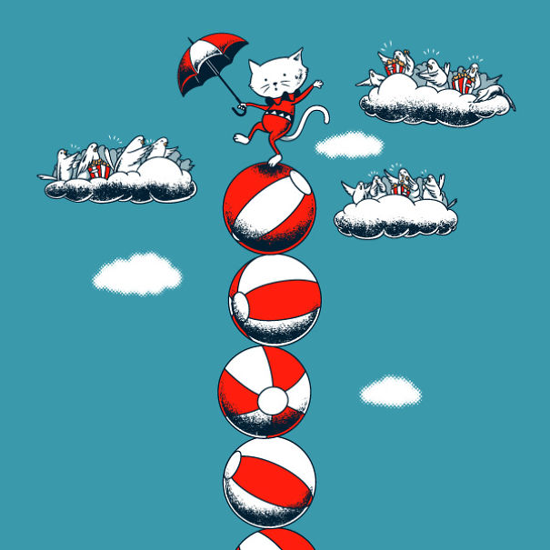 生活哲學,其實就是我們面對生活的態度。有些人步伐相當匆忙,一天24小時彷彿都不敷使用;有些人步調緩慢,喜歡欣賞一路的風光明媚;有些人擁有雄心壯志,帶著一股熱情拼命的向前衝;有些人只追求內心的平靜,塵世間的紛紛擾擾就像雲煙不值得在意。國外一名代號flyingmouse365的網友,用可愛的插畫描繪出喵喵的生活哲學,也許你和貓貓想的也是同一件事唷。