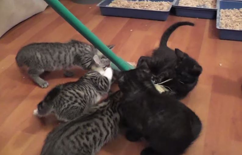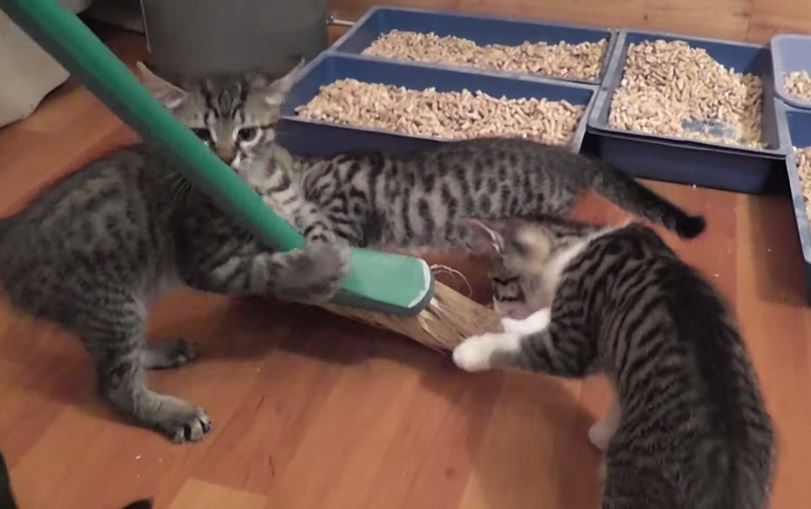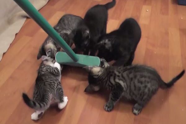 很多貓咪都對掃把或拖把很有興趣,大概是因為它會一直來回動來動去,每次I小編在用除塵拖時也都會有一隻搗蛋鬼一直在旁邊亂!而對溫哥華一處貓咪中途之家--Vancouver orphan kitten rescue的工作人員來說,在小貓房裡掃地真的是一件令人又好氣又好笑的差事啊~~~