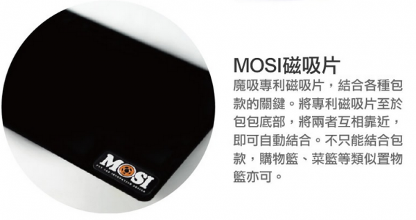 只要在任何一款包包底座裝上推車附的MOSI磁吸片,就可以把包包吸附在推車上
