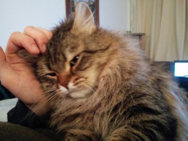 貓奴表示牠現在已經變得非常自在,甚至搖身一變成為一隻愛躺大腿的貓咪!