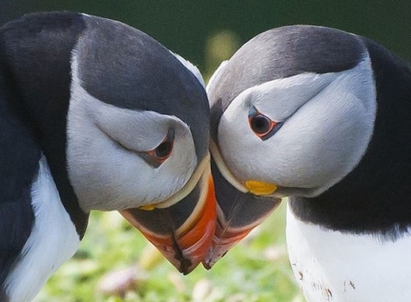 即使苦著一張臉也要甜甜蜜蜜的海鸚鵡夫妻,是「一胎化」的支持者,牠們會建立長期且鞏固的夫妻情感,並一起在喜歡的岩石間或泥土中共築愛巢