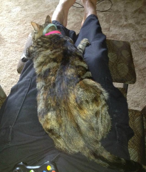 在他們接回卡蜜拉.琳的幾天後,rukia8492的焦慮症發作,那是戰地中一場意外所帶給他的後遺症;正當他心跳加速冒冷汗時,卡蜜拉.琳竟緩緩地走近他,接著跳上他的胸口,開始踏踏。從此以後,卡蜜拉.琳總是靠著他睡,或乾脆睡在他身上!