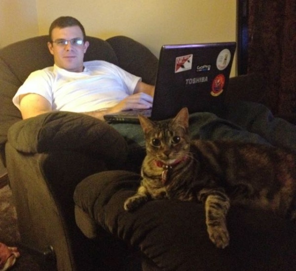 卡蜜拉.琳是在2013年年底時來到他家的。當時他被派駐在夏威夷,剛剛動完一場腳踝的重建手術,每天都必須做復健,非常痛苦;這時他的太太在網路上看到有一則貓咪送養的訊息,他們討論了一下,就決定開車將卡蜜拉.琳接回家!而幾天之後,他們便發現卡蜜拉.琳是隻撒嬌鬼!
