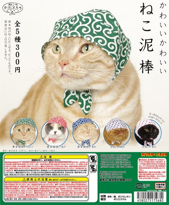 有鑑於許多貓奴都喜歡把自家喵星人打扮成可愛的小偷,於是奇譚俱樂部乾脆就推出「超可愛超可愛的貓小偷」扭蛋,不同於一般扭蛋大部份都是公仔居多,這款「超可愛超可愛的貓小偷」其實是一款貓咪小偷造型頭巾哦!