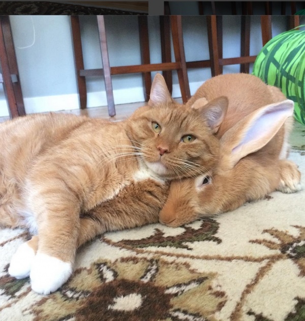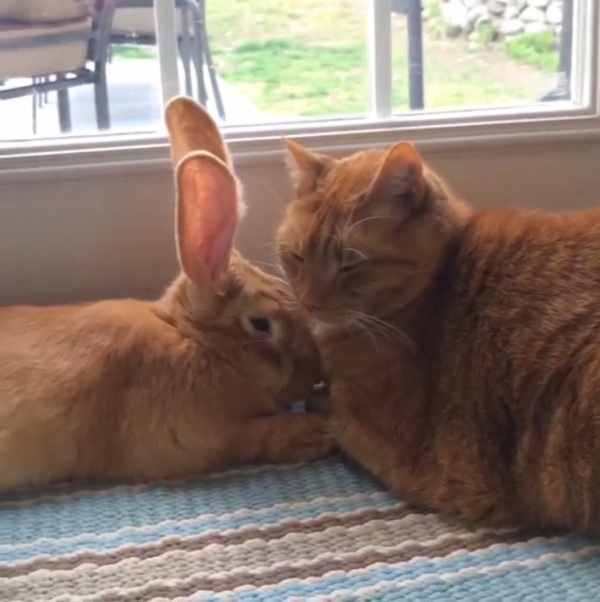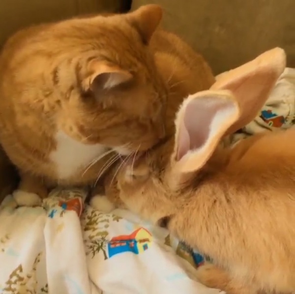 最近這對兄弟在instagram上把大家萌暈了!橘貓哥哥(Gus)對於初來乍到的小兔子(Wallace)照顧有加,除了對兔小弟有保護欲以外,還會幫弟弟舔舔洗澡,真是溫馨又可愛!