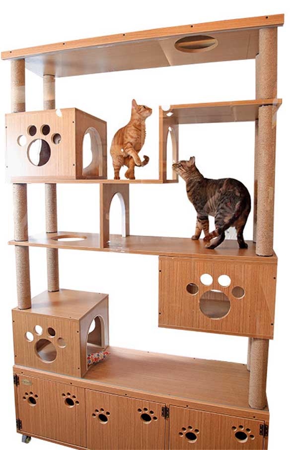 ▲客製化的大型貓跳台,可說是貓豪宅!