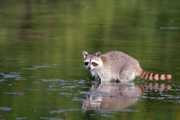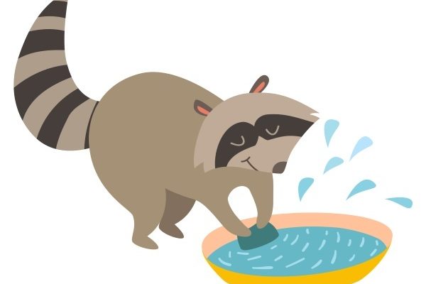 夜行性動物的浣熊其實視力不太好,因此當牠們在水邊抓到獵物時,會用二隻手去反覆確認這是不是可以吃的東西;而牠們站在水邊拿著獵物翻來摸去的樣子,就常被人類誤以為牠們在洗食物。