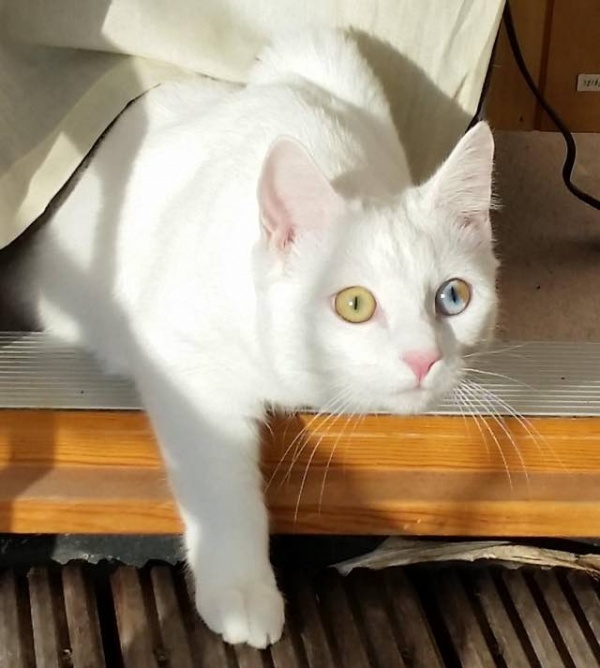 國外有Imgur用戶PO出了一隻特別的白色貓咪,牠的眼睛竟然有不同的顏色!