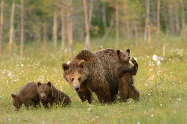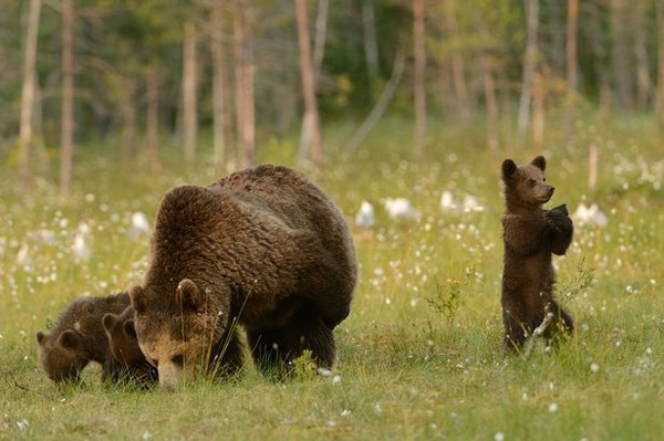 動畫電影功夫熊貓描述一隻一心想學功夫,但卻笨手笨腳的熊貓拜師學藝的過程;沒想到現實中竟然真的有懂中國功夫的動物嗎?有人在芬蘭的森林裡拍到一隻棕熊媽媽帶著小熊們悠閒地吃草,然而其中有一隻小熊卻自顧自地在一旁比手劃腳,看起來就像在練太極拳一樣!模樣超極逗趣!