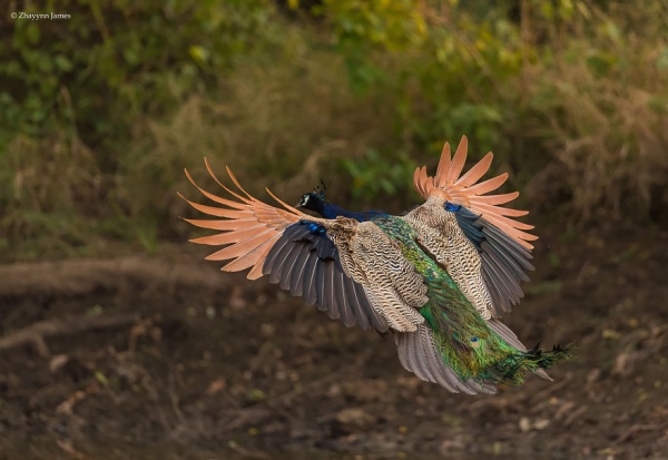 圖片來源:https://500px.com/photo/82310403/peacock-in-flight-by-chandrashekar-badami