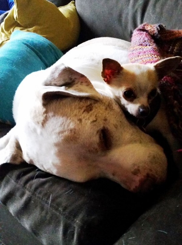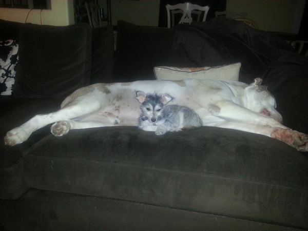 小吉娃娃和查理相反,牠因為營養不良太過瘦弱,導致牠容易覺得冷而經常發抖;而這時,體重100磅的查理就是最好的大暖爐!小吉娃娃經常會依偎在查理身邊取暖、一起在沙發上睡覺。
