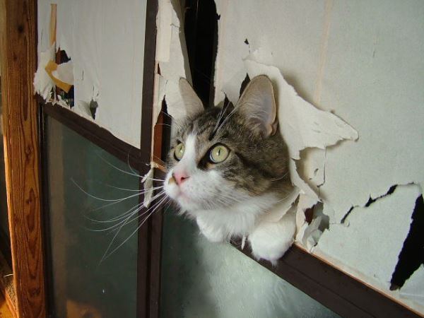 日本貓奴家裡的紙拉門在喵星人的蹂躪之下,常常是這種破爛的狀態