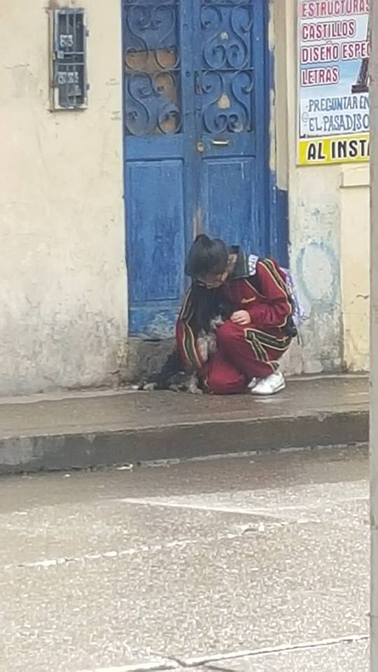 人間處處是溫情!日前在秘魯萬卡約的路邊,有人拍下一幕相當暖心的畫面。一位當地的女大生看到路旁一隻流浪狗在大雨中發抖,也沒帶傘的她竟然將狗狗圈在懷裡,用自己的身體替狗狗擋雨!這一幕被路人捕捉下來,照片很快地流傳到世界各地,連女大生本人都嚇了一跳!