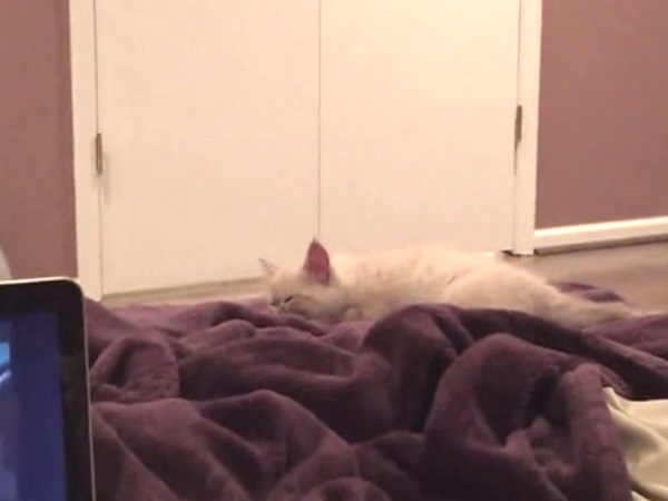 一位貓奴帶了一隻小貓咪回家,小貓適應力很強,馬上就在新家爽爽睡