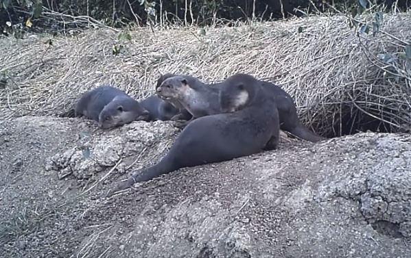 一群江獺聚在一起放空,享受悠閒的時光~