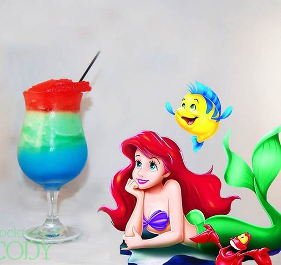 而小美人魚裡的艾莉兒海妖之歌也是夏日會受女孩們歡迎的調酒唷! 繽紛的顏色真的好夢幻阿!