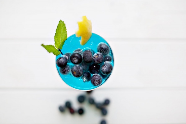 最後放上冰凍藍莓,與檸檬皮和薄荷來完成裝飾。