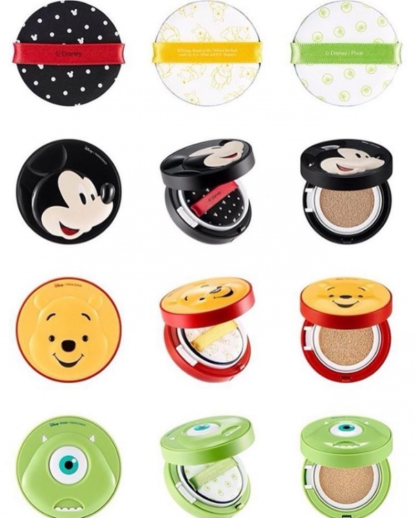 THE FACE SHOP 在台灣預計明年 2 月份推出迪士尼聯名系列彩妝商品,有維尼氣墊粉餅、大眼怪氣墊粉餅、米奇耳朵睫毛膏,實在可愛到令人無法不失控全部把它們通通帶回家阿!