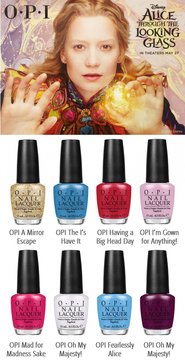 而 O.P.I 指甲油也搭上了電影《愛麗絲夢遊仙境2 : 鏡中奇遇記》的這股熱潮,推出 8 款新色與 1 款限定色指甲油,分別為: 女王殿下、魔鏡大逃亡、瘋狂帽客的冒險。