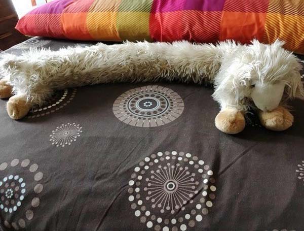 最讓Angie驚訝的是,有天牠帶回比牠自己大兩倍的大娃娃!而且還一臉輕鬆躺在一旁!