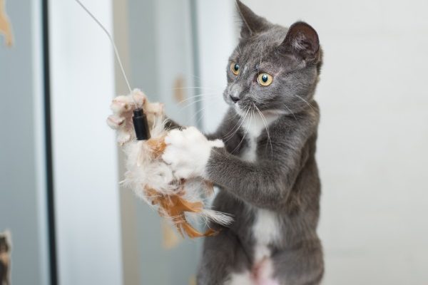 玩逗貓棒,對貓咪來說就是個狩獵遊戲,即使身為一隻家貓無需狩獵也有東西吃,但牠們的血液中天生就有著獵人的因子,有著狩獵的慾望!然而一直追著獵物(逗貓棒)跑,卻無法成功抓到它,這會給貓咪帶來極大的挫折感!因此,貓奴在和貓咪玩玩時,務必記得最後一定要讓貓咪抓到目標,滿足這些小小獵人的成就感哦!